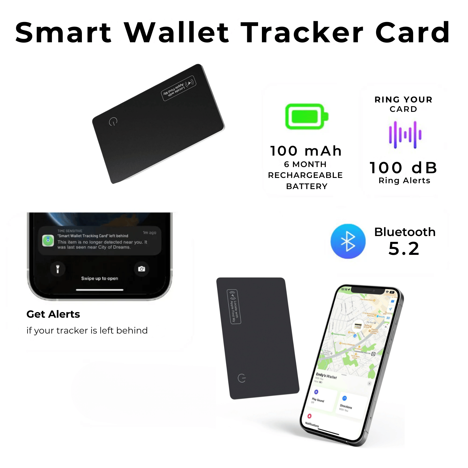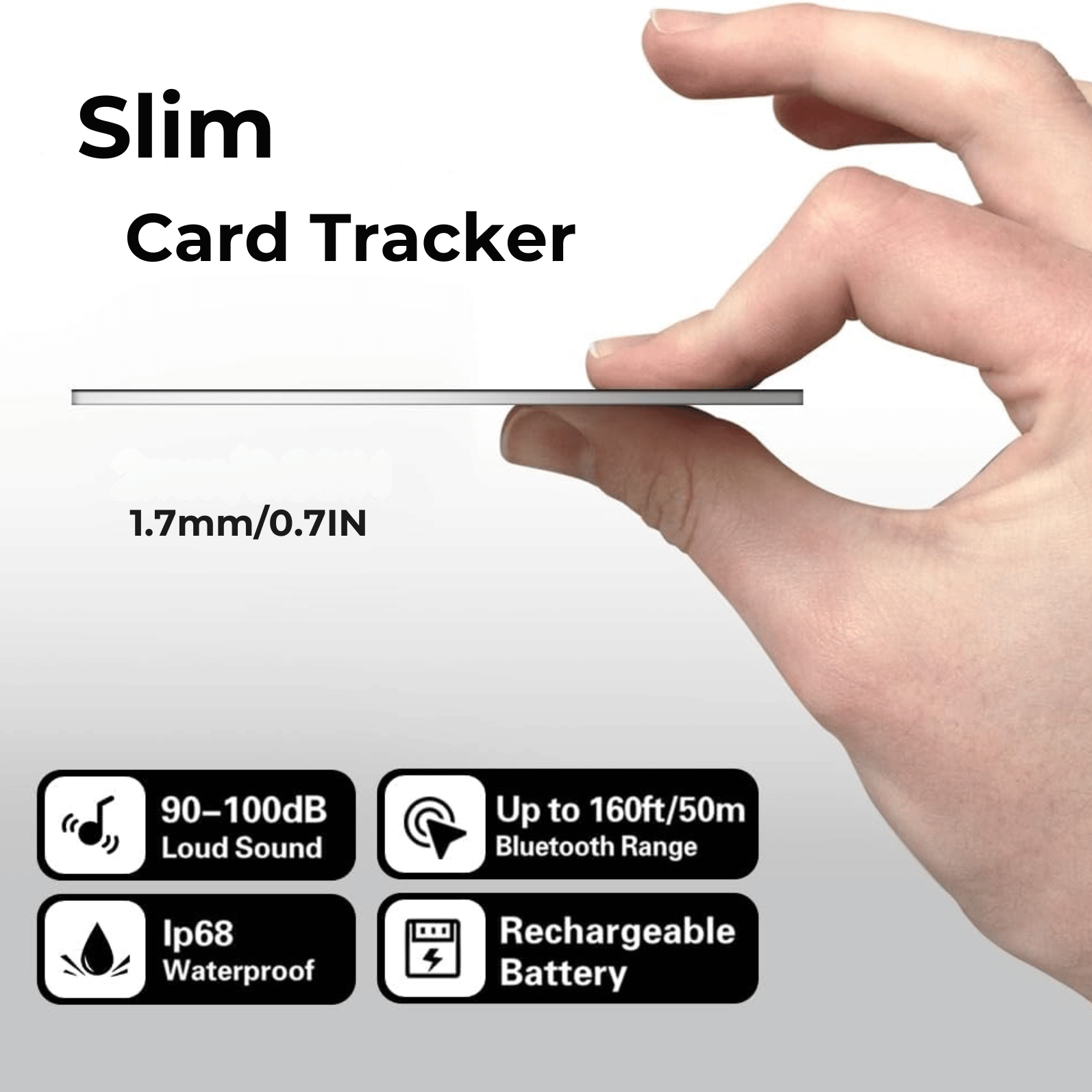 Track smarter with a 6-month rechargeable battery, 100dB sound, anti-loss alerts and Bluetooth 5.2 — all packed into one ultra-thin card.