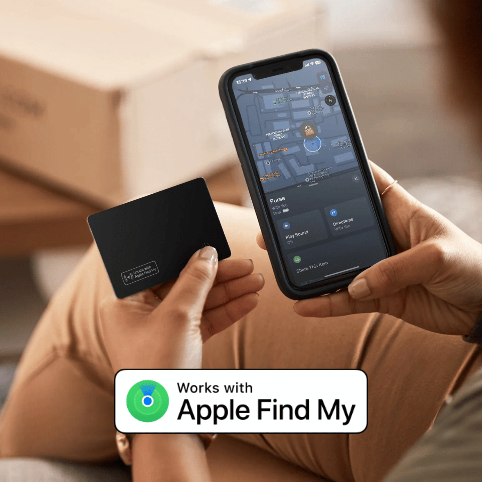 📱 Seamlessly syncs with your Apple life. Works just like an AirTag, only made to actually fit your wallet.