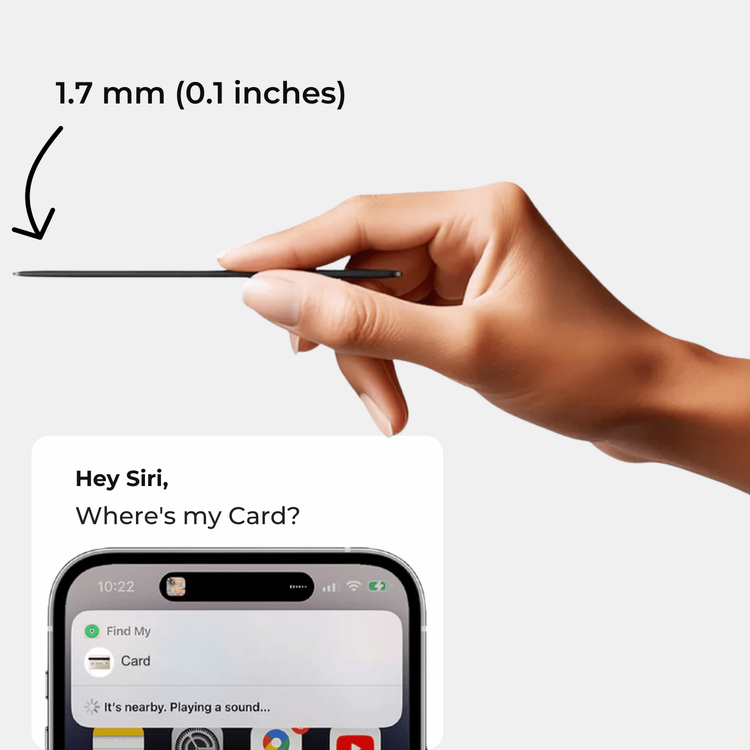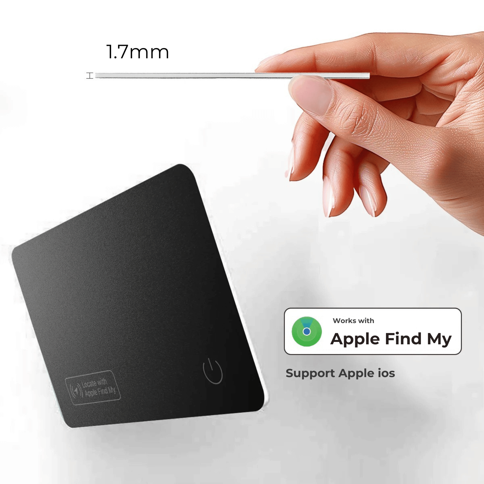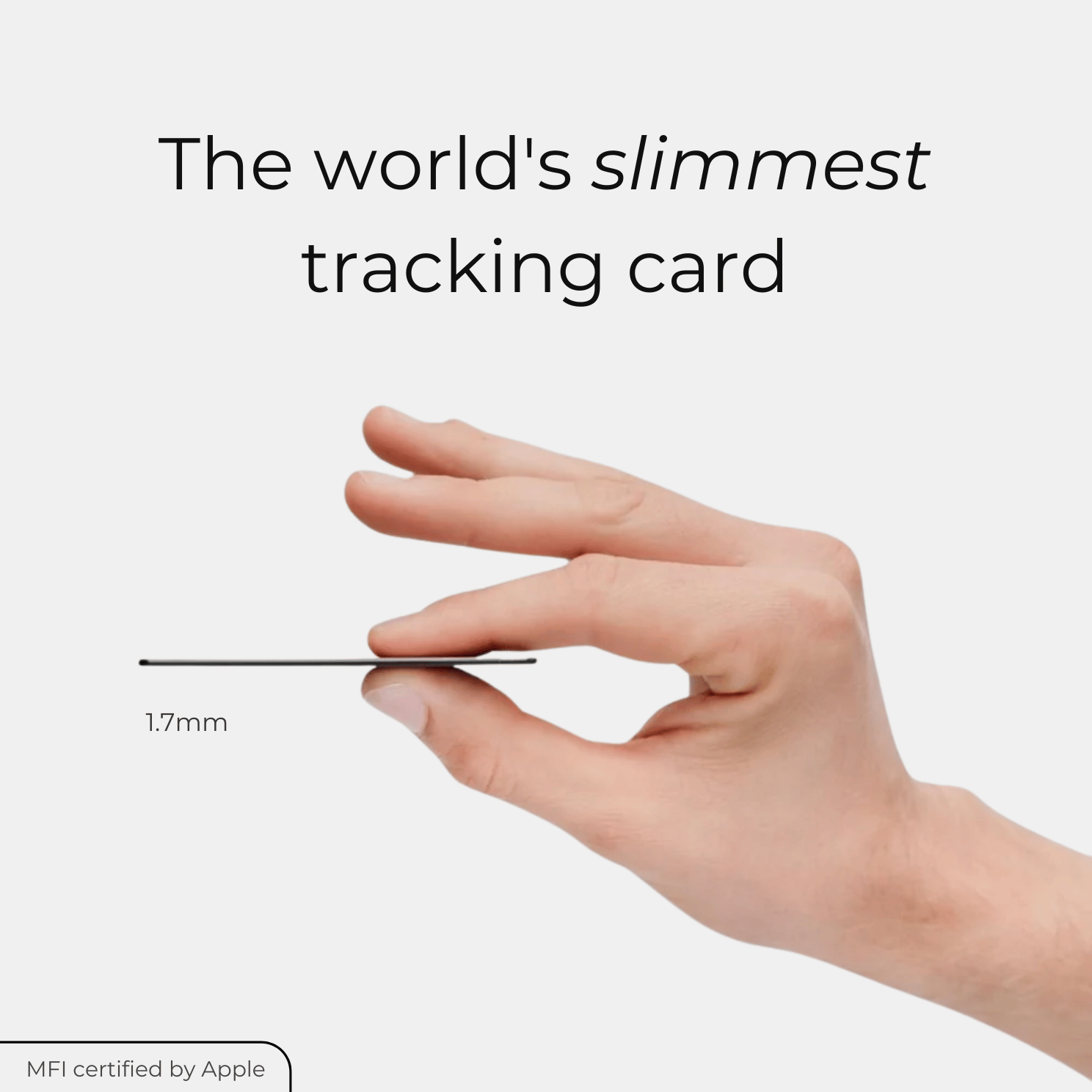 Ditch chunky trackers. This 1.7mm thin card slips into your wallet and connects to Apple Find My — so you can track what matters, effortlessly.